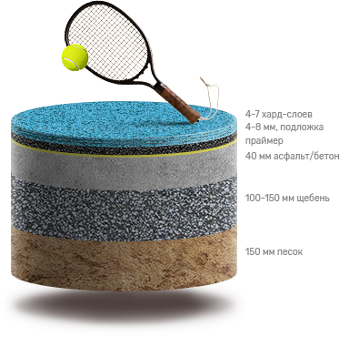 Мягкое покрытие для тенниса и баскетбола с рулонной подложкой и покрытием hard |